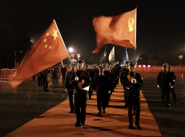 國旗招展,黨旗飄揚。12月26日4:50,奧吉娜緬懷偉人科創(chuàng)先鋒團(tuán)全員整隊集合,邁著整齊矯健的步伐,高唱《中國人民解放軍軍歌》前往毛澤東紀(jì)念館銅像廣場。